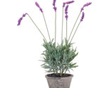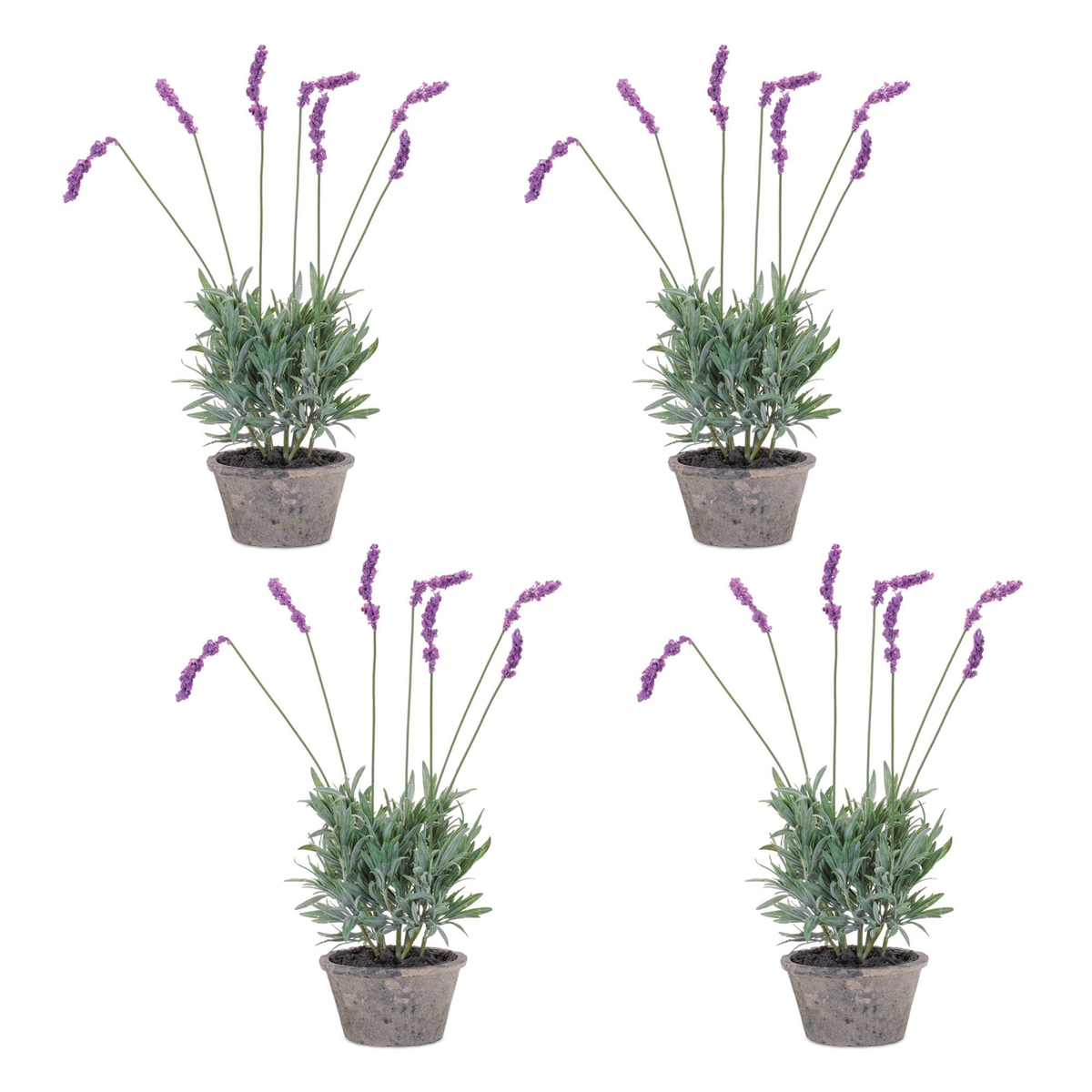 Bring the serene beauty of lavender to your space with this set of four Potted Lavender Plants. Featuring soft purple florals and natural green foliage, each plant is housed in a stylish cement pot with faux soil filler for a realistic look. Ideal for tabletops, window sills, or shelves, these potted plants add a touch of nature and elegance to any room. Sold in a set of four matching pieces, they are perfect for creating cohesive decor displays.