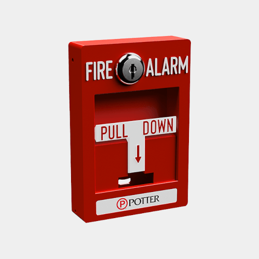 The PAD100-PSSA (Single Action) by Potter is activated by simply pulling the white "T" bar handle down. The PAD100-PSDA (Dual Action) is activated by lifting the front cover and then pulling the white "T" bar handle down. Once activated, the "T" bar cannot be reset without opening the front cover. Opening the front cover will also activate the pull station. To reset the PAD100-PS Series, use the Potter WS-93 key to unlock and open the front cover. Once the cover is open, push the "T" bar back into the normal position and re-secure the front cover.