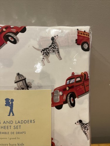 - POTTERY BARN KIDS Trucks And Ladders Firetruck Dalmatian Dog QUEEN sheet set NEW