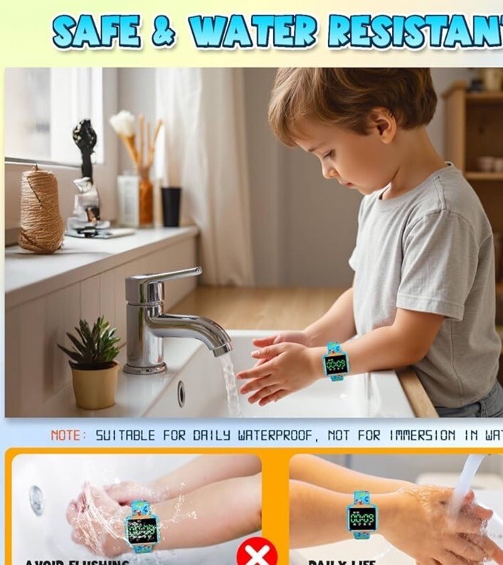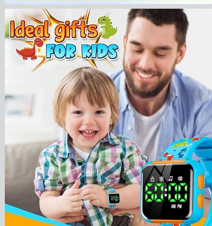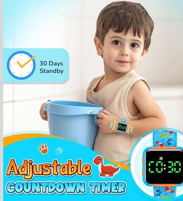 The Potty Training Watch for Kids by Etuwoe is a fun and functional tool for potty training boys. With a cartoon dinosaur design, this water-resistant watch features a digital display and automatic movement. The two-piece silicone strap in blue color is comfortable for kids to wear, while the stainless steel case ensures durability. Complete with batteries included, this potty training watch is a convenient reminder for children to use the bathroom.