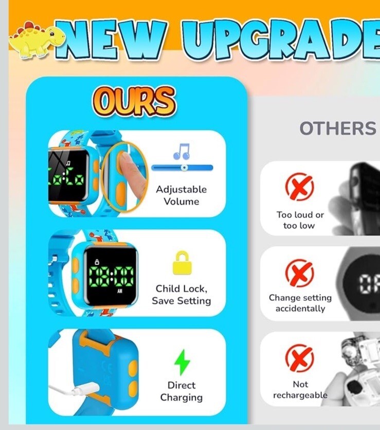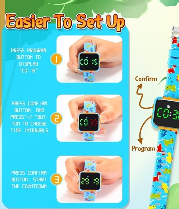 - Potty Training Watch for Kids - Water Resistant Dinosaur Reminder Blue
