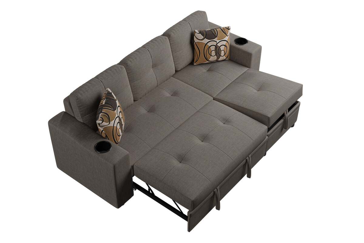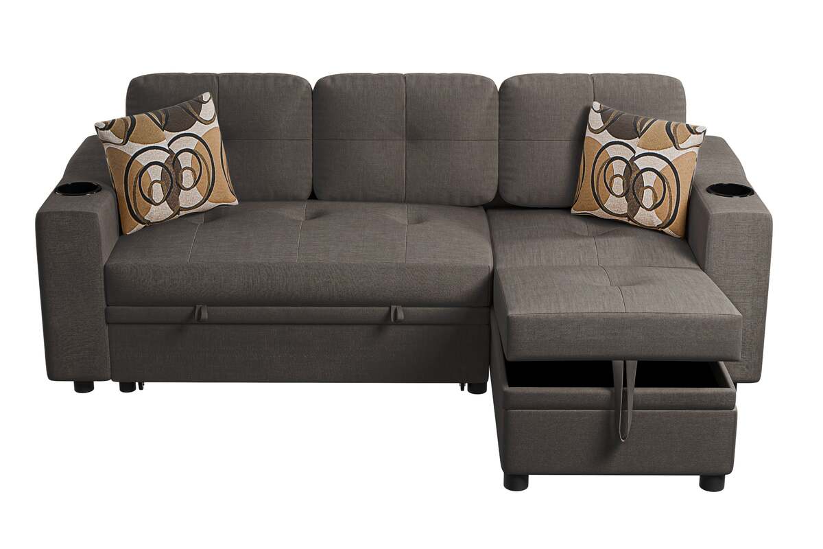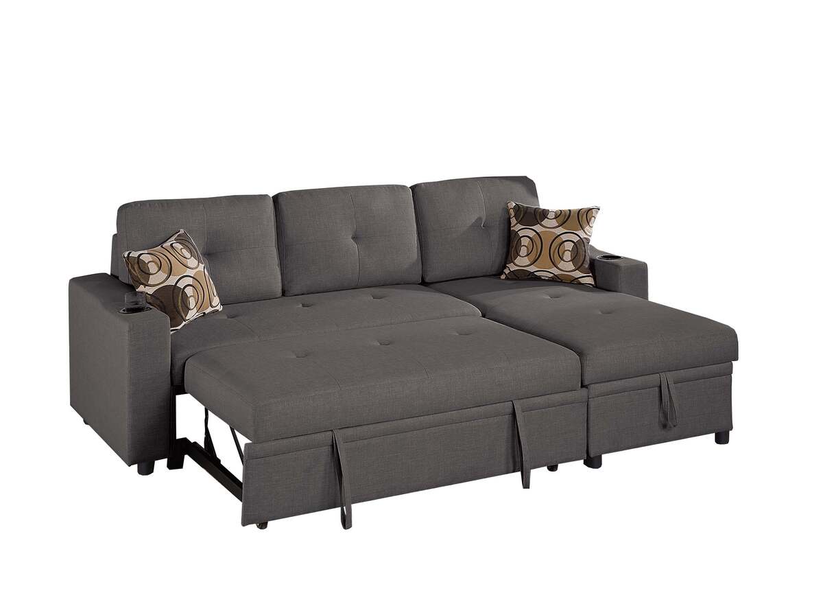 - Poundex Reversible Convertible Sectional Sofa W/Storage & Cup Holders