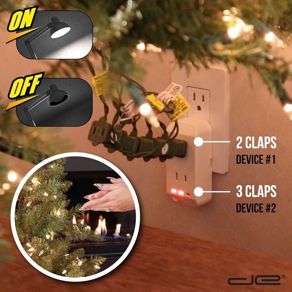 Dual Power Outlets: Control two appliances simultaneously - 2 claps activate device 1, while 3 claps power device 2.