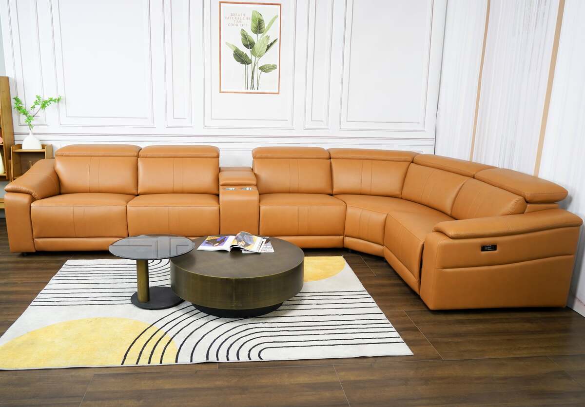 Power Recliner Sectional Sofa Set: Leather, USB, Storage Console