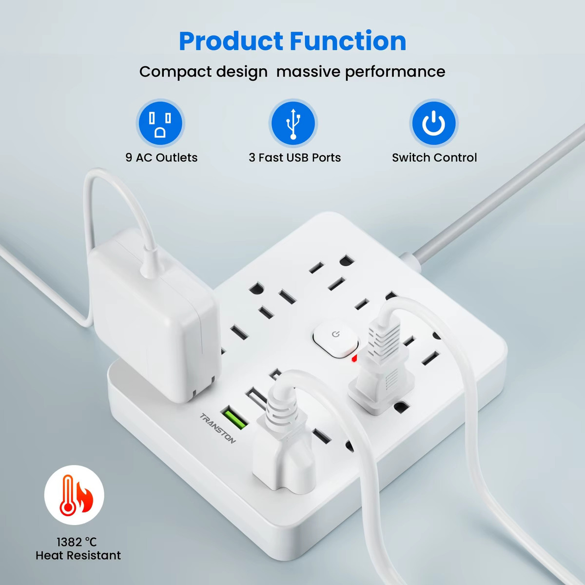 Keep all your devices powered and protected with this Power Strip Surge Protector featuring 9 AC outlets and 3 USB charging ports. Designed with advanced safety features and a 5-foot heavy-duty cord, it?s perfect for home, office, or entertainment setups. Charge multiple devices safely and efficiently with one compact power solution.