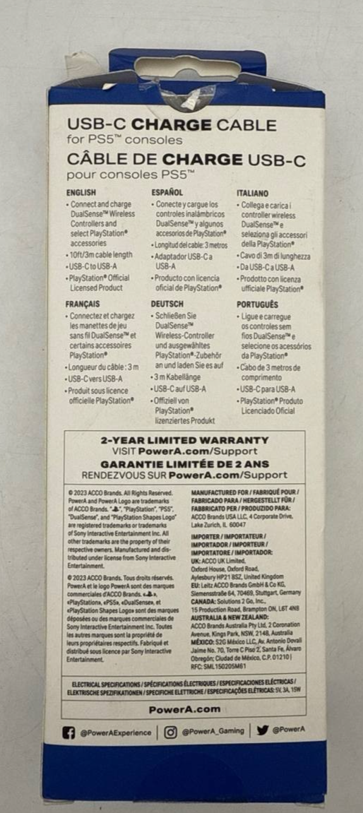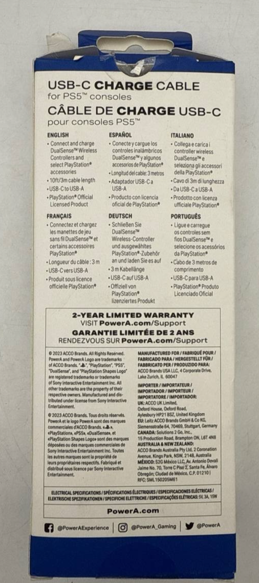PowerA Charging Cable USB C for Sony PlayStation 5 DualSense Controller Official