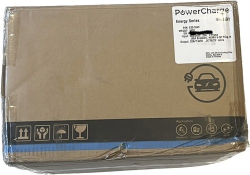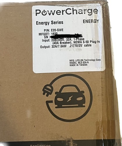 PowerCharge E20SWE Energy Residential EV Charger. This is an open box item, never been used/installed. What you see in the pictures, is exactly what you will be receiving.