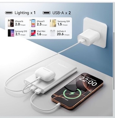 - Poweradd Portable Charger Pilot 4GS 12000mAh Pink Dual USB Power Bank And Cord.