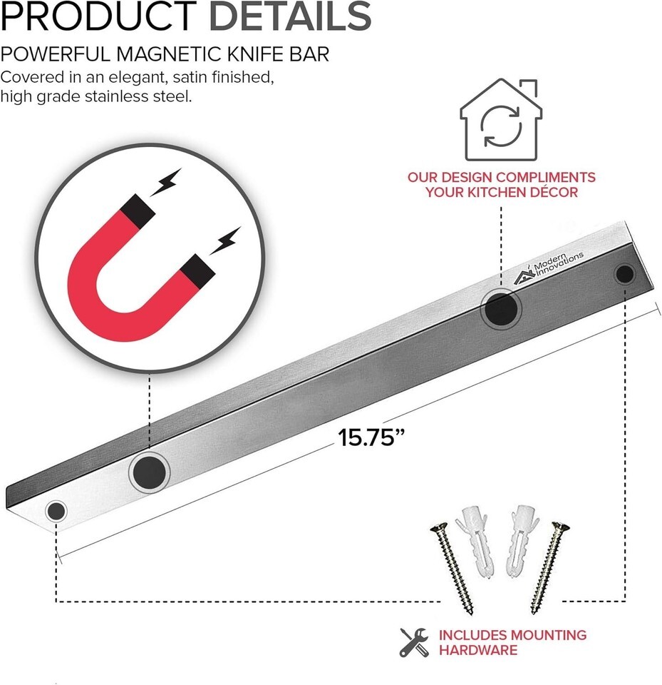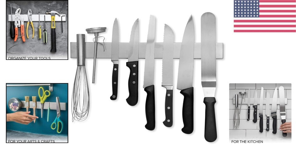 - Powerful Magnetic Knife Bar - 16-Inch Stainless Steel for Kitchen & Home