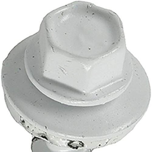 Designed to fasten steel roofing to wood purlins used in post frame construction plywood or OSB used in residential construction. Produced with coating with enhanced corrosion resistance over painted heads. 2.5 mils of powder with chromate sealer. HWH with V-neck design adds strength prevents heads from popping. EPDM rubber is vulcanized to a steel washer to form an excellent seal even when driven at an angle. Designed to fasten steel roofing to wood purlins used in post frame construction plywood or osb used in residential construction Produced with coating with enhanced corrosion resistance over painted heads 2.5 mils of powder with chromate sealer HWH with V-neck design adds strength prevents heads from popping EPDM rubber is vulcanized to a steel washer to form an excellent seal even when driven at an angle Threads transition from fine to coarse to generate superior holding strength in various wood substrates Micro-bit point reduces metal shavings that can embed themselves in the rubber washer Starts fast finishes straight Pro-stick bit included. Specifications 1 lb Size: 10 x 1.5" Finish: White.