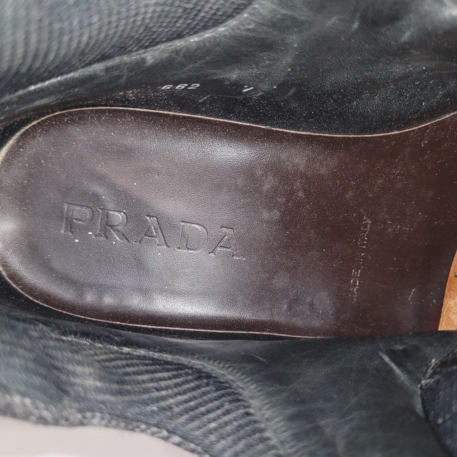 PRADA MEN?S BLACK LEATHER HIKING BOOTS TYROLEAN? BRIXXEN? 7 US Size 7 - US / UK 6 / EU 39.5 See Photos It says 3 662 7