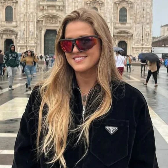 - Prada PS07YS 13K05U Linea Rossa Sunglasses Matte Blue/Black Rubber Blue Mirror