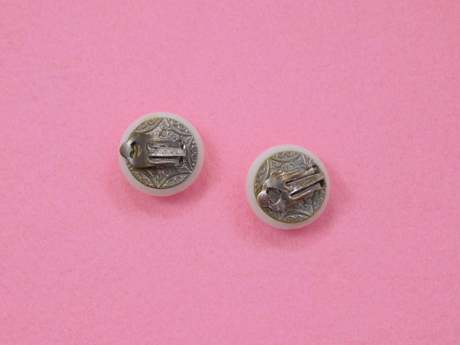 - Pre-1949 White Button Clip Earrings, Vintage Signed Germany