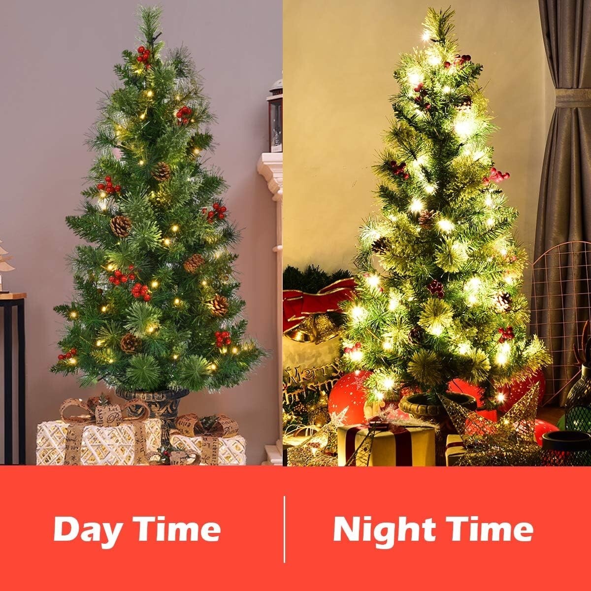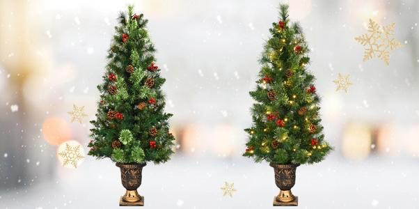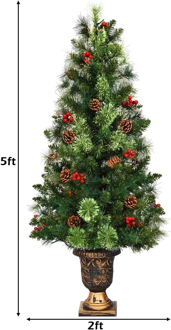 - Pre-LIt LED Christmas Pine Tree Topiary Planter Urn Outdoor Holiday Decor 60"H