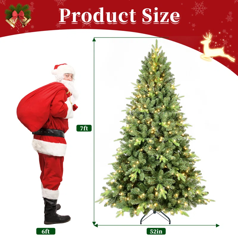 Elevate your home with our stunning Christmas Tree. Pre-lit with warm white lights, it creates a cozy, magical atmosphere indoors or outdoors. Crafted with PVC branches and PE branch tips, it offers a rich, full appearance with deep green foliage for a festive vibe. Make it the centerpiece of your holiday decor.celebrations.