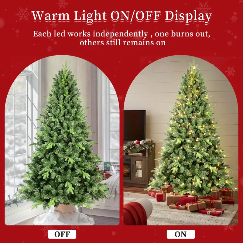 Pre-Lit Artificial Christmas Tree Warm White Lights & PVC/PE Mixed Branch tips