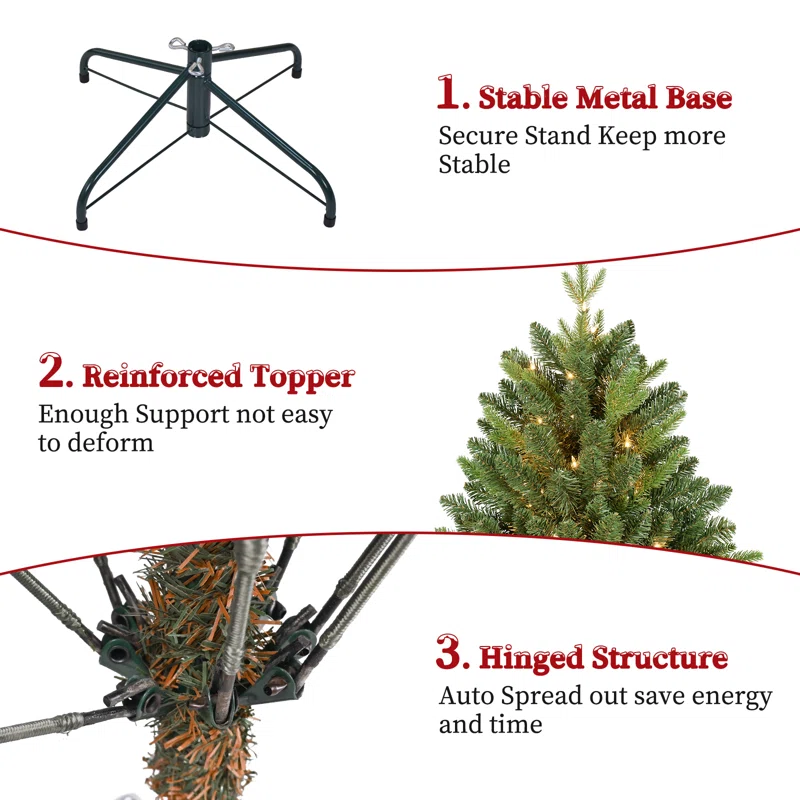 - Pre-Lit Artificial Christmas Tree Warm White Lights & PVC/PE Mixed Branch tips