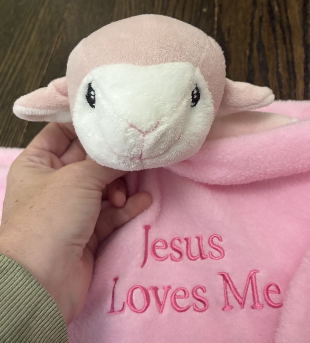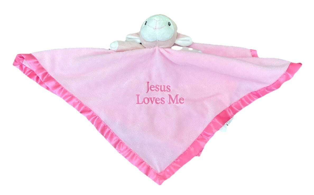 Precious Moments Jesus Loves Me Pink Lamb Sheep Baby Security Blanket Lovey Nunu