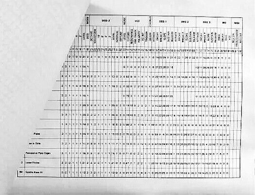 This is a very good reproduction copy of the Preload Program List Sheets for the now classic 1980's synth, the Korg POLY800. These are 6 pages of parameter data settings for the Poly-800 (which had an menu type of programming with an LED to show the parameter numbers). These sheets are in excellent lightly used condition.