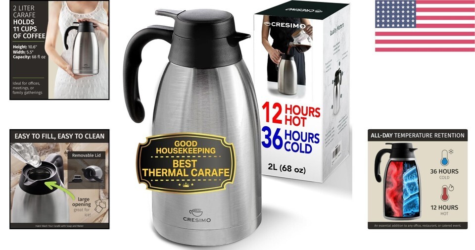 - Premium 2L Thermal Coffee Carafe - 12 Hours Hot & 36 Hours Cold Insulation