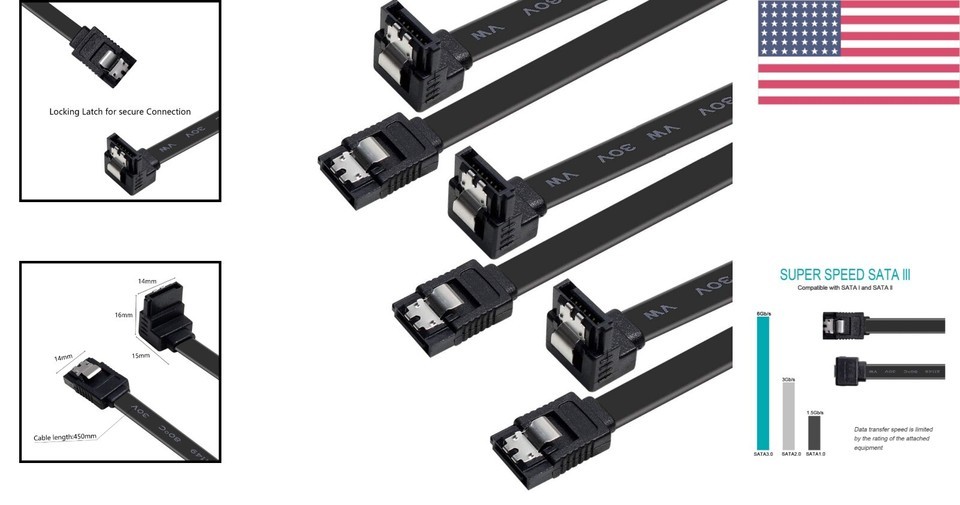 Primary image for Premium 3 Pack SATA III Cables - 18 Inch Fast Data Transfer with Locking Latch