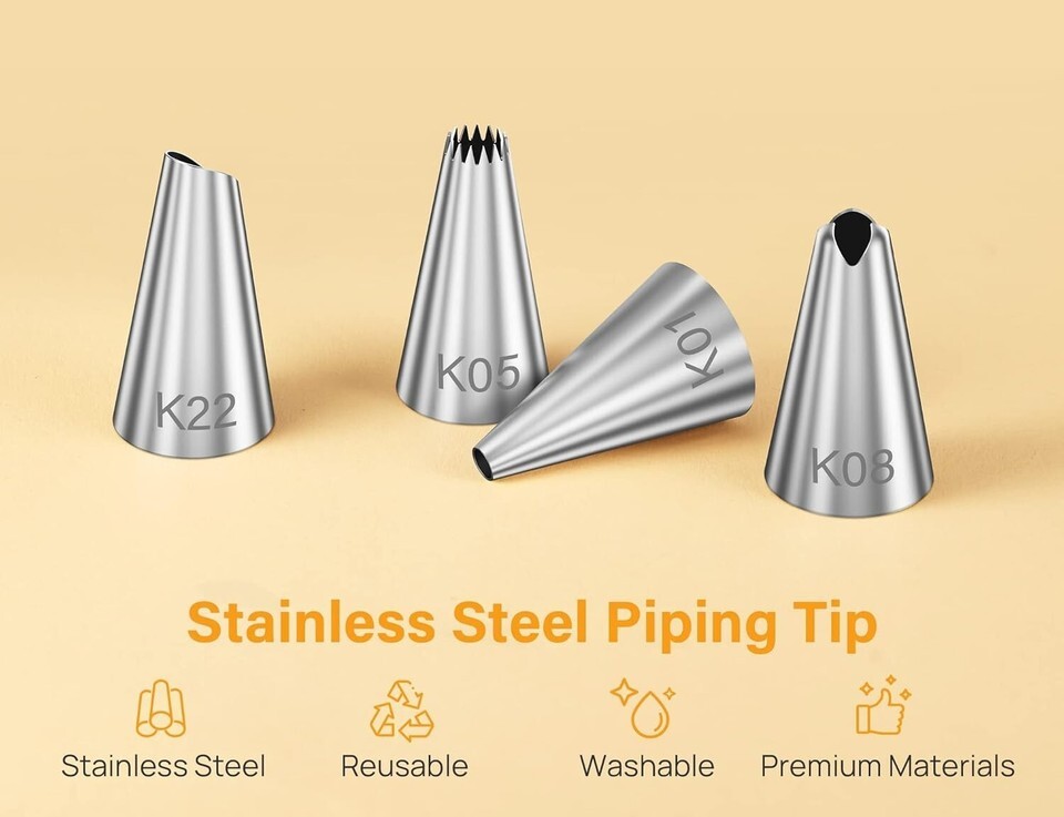 Premium Quality Materials: Our icing tools are made from strong, durable, stainless steel that is corrosion resistant, reusable, non-stick, tasteless, and food grade. Easy to clean and dishwasher safe!