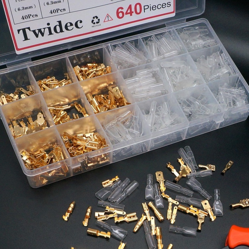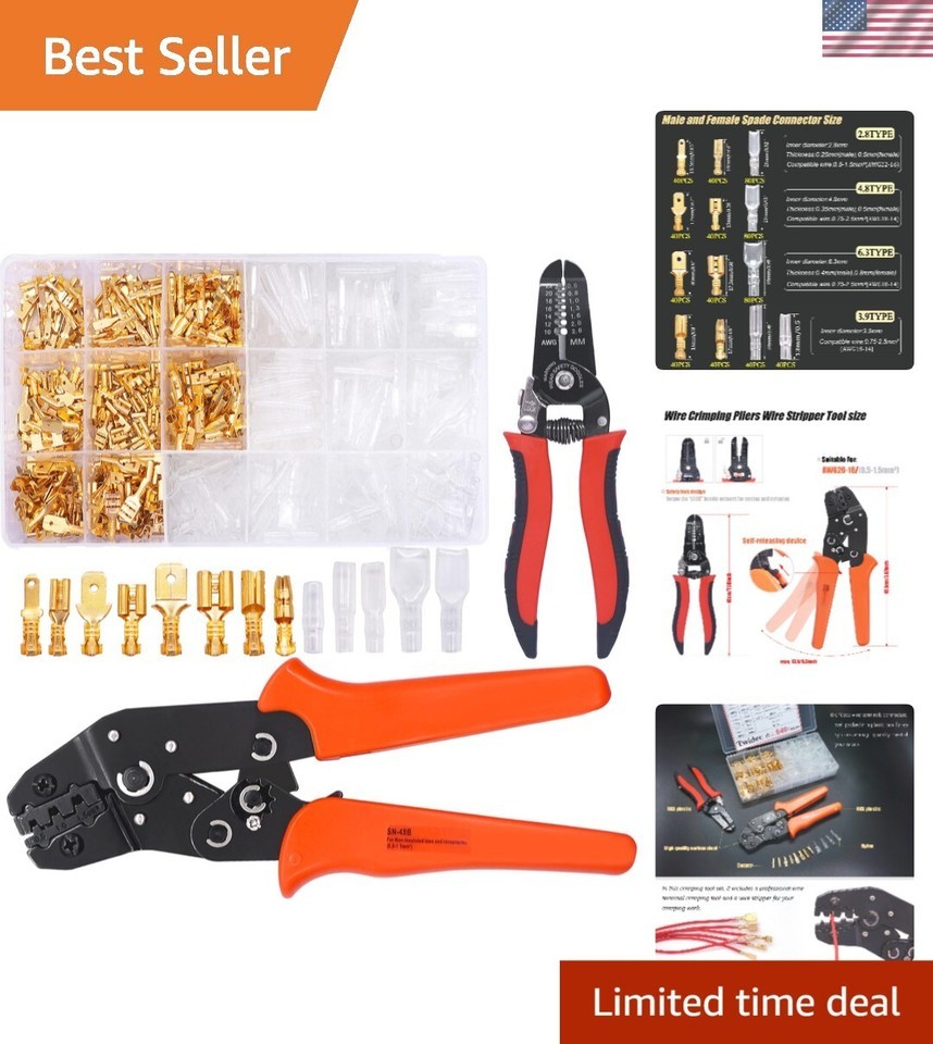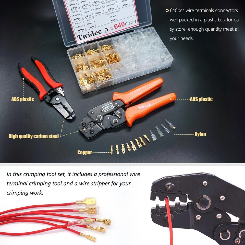 - Premium 640Pcs Quick Splice Spade Connector Kit with Crimping Tool - Gold Plated