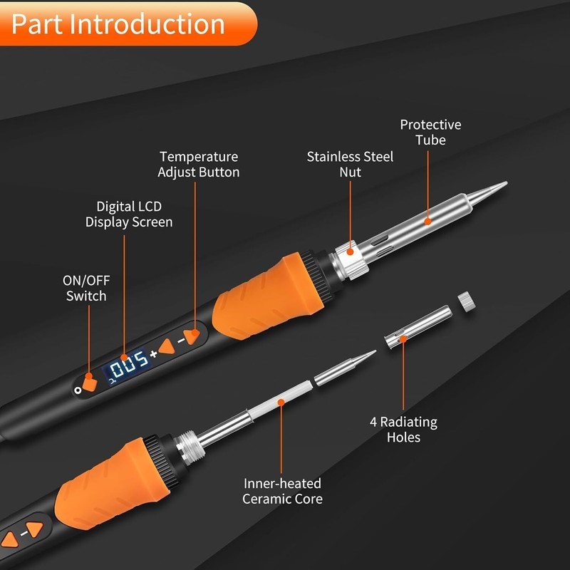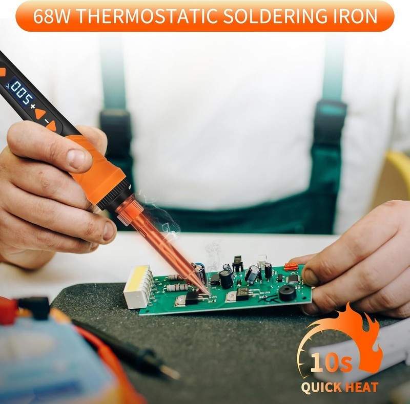 Store New Arrivals Add to Favorite View Feedback Contact Premium 68W Soldering Iron Kit LCD 12-in-1 Adjustable Temp 200-500C Tools Set Description Item model number LC-soldering kit 68W Part Number LC-soldering kit 68W Style Gun Power Source Corded Electric Color Orange Upper Temperature Rating 932 Degrees Fahrenheit Wattage 68 watts Material ceramic, sponge, foam, metal, iron Batteries Required? No Specific Uses For Product Jewellery Soldering, Residential Use Item Weight 1.34 pounds Handle Material Rubber or Silicone Head Style [MULTI] Burner type Ceramic Special Features Portable Special Feature Portable Package Dimensions 10.91 x 5.98 x 2.44 inches ?Digital Display?The large LCD screen on this soldering iron kit provides a clear, easy-to-read temperature display, allowing you to monitor and adjust the heat accurately. It features a temperature lock function, so you can save your preferred setting and avoid constant adjustments. Additionally, the electric soldering iron includes a temperature calibration function, enabling manual fine-tuning to meet the temperature requirements of different work scenarios. ?Efficient and Safe Performance?Equipped with a high-performance ceramic heating element, this 68W soldering iron kit for electronics heats up quickly for efficient soldering. The intelligent temperature control system allows for precise adjustments between 200C and 500C (392F - 932F), ensuring versatile use. ?Efficient and Safe Performance?Equipped with a high-performance ceramic heating element, this 68W soldering iron kit for electronics heats up quickly for efficient soldering. The intelligent temperature control system allows for precise adjustments between 200C and 500C (392F - 932F), ensuring versatile use. ?Versatile Soldering Kit for Every Project?This premium soldering iron kit is perfect for DIY repairs, electronics projects, appliance fixes, and circuit board soldering kit tasks. The various soldering iron tips are ideal for soldering guitars, watches, wires, mobile devices, small electronics, TV components, and jewelry making. Whether you're a hobbyist or a professional, this micro soldering kit for electronics has everything you need for precise and efficient soldering. ?12-in-1 Comprehensive Wire Soldering Kit?This soldering kit for electronics includes all the necessary accessories for soldering work: a 68W soldering gun, toolbox, 0.8mm solder wire, flux paste, solder sucker, tweezers, 5pcs soldering iron tips, a stand, and a cleaning sponge. The portable soldering iron kit is ideal for both novices and experts, whether it's used for repairing electrical appliances, soldering circuit boards, making jewelry, or various DIY projects. ?User-Friendly?The electronics soldering kit is designed with an ergonomic anti-slip handle, providing a comfortable grip. It features a 4-hole heat dissipation component cover and a heat-resistant thread plug, making your soldering work safe and simple. The included stand can support the electric soldering iron during use, ensuring safety while working on projects like wire soldering kits and more. Product Description Super convenient toolboxes meet every need The soldering iron box offers protective features to prevent accidental bumps, drops, or damage to the soldering iron when not in use, extending the device's lifespan. The box effectively blocks dust and dirt, keeping the soldering iron clean and reducing maintenance efforts. K KERNOWO Soldering Iron Kit Add to Cart Add to Cart Add to Cart Add to Cart Add to Cart Customer Reviews 4.4 out of 5 stars 1,103 4.3 out of 5 stars 141 4.3 out of 5 stars 141 4.2 out of 5 stars 437 4.3 out of 5 stars 141 Price $21.99$21.99 $13.99$13.99 $13.99$13.99 $36.99$36.99 $9.79$9.79 ON/OFF Switch ? ? ? ? ? Watt 68W 90W 90W 160W 60W Digital Display ? ? ? ? ? ? to ? Conversion ? ? ? ? ? Anti-scalding Handle ? ? ? ? ? Temperature Range 200-500?(392-932?) 180-500?(356-932?) 180-500?(356-932?) 200-500?(392-932?) 200-450?(392-842?) (WARNING: This product can expose you to lead, which is known to the State of California to cause brith defects or other reproductive harm. For more information go to the offical Proposition 65 Warnings Website) ABOUT US We offer the best prices around on high quality products. Our E-store includes media such as books, movies, music and games while offering electronics, toys, sporting apparel, clothing, tools, general home, garden items and more. SHIPPING We are always working hard to ensure your package arrives as soon as possible. Please understand that some factors like weather, high postal traffic, and the performance of shipping companies are outside of our control. RETURNS We offer a 30-Day Return Policy on items which you are not completely satisfied with. You have the option for a full-refund or an exchange of the item. PAYMENT We accept PayPal. CONTACT US This page content is yet to come Please ad us to your favorite seller and visit again later Thank You CUSTOMER SATISFACTION We try our very best to make sure every customer is completely satisfied. If there's a problem, message us! We're happy to help.