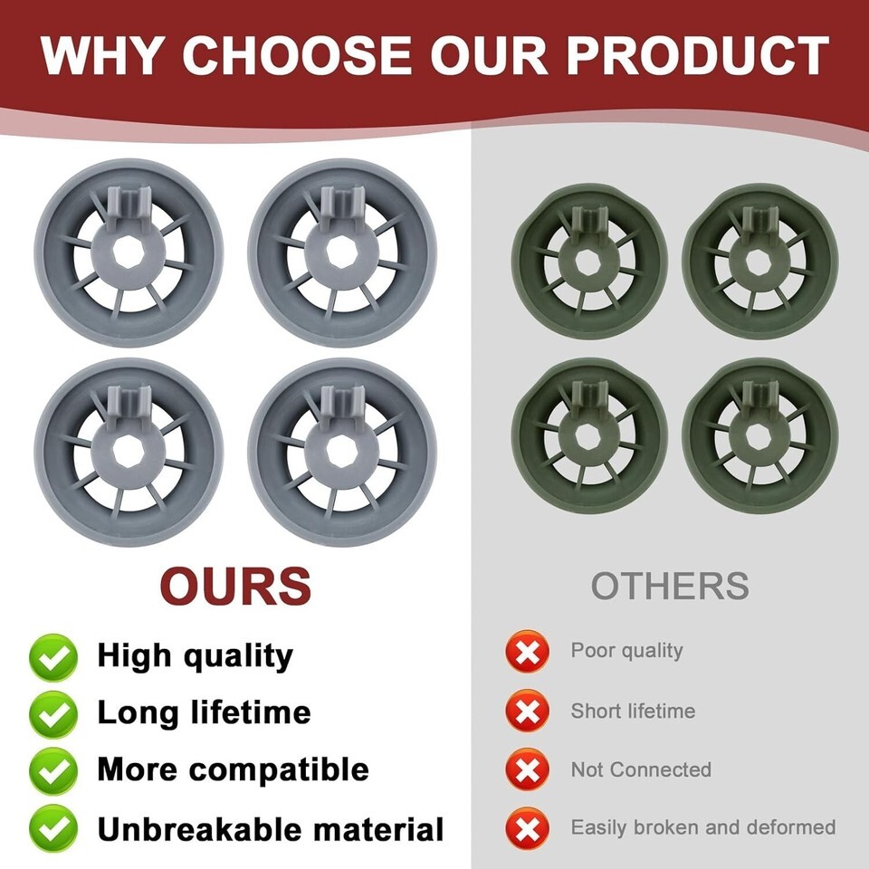 Premium Bosch Dishwasher Roller Wheels - 1.42 Inches, Easy Installation, 8-Pack