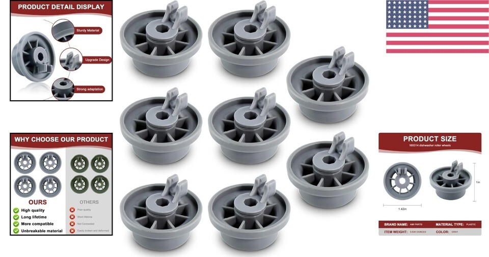 Premium Bosch Dishwasher Roller Wheels - 1.42 Inches, Easy Installation, 8-Pack ? ? ? ? ? ? ? ? ? ? ? ? ? ? ? ? ? ? Premium Bosch Dishwasher Roller Wheels - 1.42 Inches Easy Installation: Designed for effortless replacement, ensuring your dishwasher operates seamlessly. 8-Pack: Convenient bundle that guarantees you have enough wheels on hand for any necessary replacements. Buy With Confidence: We prioritize your satisfaction. If you encounter any issues, contact us via your Amazon Buyer Account, and we will respond within one business day. Compatibility: Replaces part numbers: , 420198, 00420198, 423232, AP2802428, PS3439123, EAP3439123. Perfectly fits most top name brands. Fit Models: Compatible with numerous models from Ken-more and Bosch, ensuring a perfect match for your appliance. High-Quality Construction: Made of robust plastic with a smooth surface. Each wheel measures approximately 3.60 cm (1.42 inches) in diameter and 2.54 cm (1 inch) in height. Effective Solution: Fixes issues when wheels malfunction, ensuring smooth loading and unloading of your dishwasher rack. Why Choose Our Premium Bosch Dishwasher Roller Wheels? Your dishwasher deserves the best. Upgrade to our Premium Bosch Dishwasher Roller Wheels for unmatched durability and reliability. Experience the joy of efficient kitchen duty as you glide the lower rack easily in and out. Don?t let worn-out wheels hinder your dishwashing experience; restore functionality with this essential replacement set. Choose quality, choose efficiency, and redefine your kitchen experience today! Shipping Free Fast Shipping - We offer free shipping to most of the USA with a normal delivery time of 3-7 days. However, due to the current situation, additional delivery time (up to 3 weeks) may be required for some items. Alternative Carriers - We may use alternative carriers (e.g. USPS, FedEx, UPS, etc.) to ensure your package arrives safely and on time. Due to the use of multiple carriers, we are unable to provide a tracking number automatically. Handling Time - Orders are processed and shipped within 1-2 business days of receiving cleared payment. Shipping Restrictions - Shipping to Alaska, Hawaii, Puerto Rico, Guam, and other US territories may incur shipping charges or delivery restrictions. Please contact us before ordering, or your order can be refunded/cancelled. State Restrictions - There may be restrictions based on your state of purchase. For example, certain items may not be shipped to California due to state regulations. Contact for Tracking Updates - If you require tracking updates or have any concerns about the delivery of your order, please feel free to contact us, and we will be happy to assist you. Return 30-Day Hassle-Free Returns - We want you to be completely satisfied with your purchase. If you are not, you can return the item within 30 days of receiving it for a full refund or exchange. Easy Return Process - To start a return, simply contact us and we will provide you with a prepaid return shipping label and detailed instructions. Restocking Fee - There are no restocking fees for returns. However, the buyer is responsible for return shipping costs if the return is not due to a seller's error. Refund Processing Time - Refunds will be processed within 5 business days of receiving the returned item in its original condition. Payment We accept all major credit cards, PayPal, and Apple Pay for your convenience. Your payment information is secure and encrypted to ensure a safe and seamless transaction. Please complete your payment within 3 days of purchase to avoid any delays in shipping. Feedback Your feedback is extremely important to us. We strive to provide the best products and customer service possible. If you are satisfied with your purchase, please take a moment to leave us a positive review. If you have any concerns or issues with your order, please contact us before leaving negative feedback. We are committed to resolving any problems and ensuring your satisfaction. Contact Us If you have any questions or concerns, please feel free to reach out to our customer support team. You can contact us through the messaging system. We are available Monday to Friday, 9:00 am to 5:00 pm EST, and we will do our best to respond to your inquiry within 24 hours. Buy it now and enjoy a pleasant shopping experience! UPC: Not Set Item Weight: 1.44 ounces Unit Quantity: 8 Suitable For: Dishwasher,Bosch,Kenmore Set Includes: Wheel Compatible Model: Bosch Features: None,Premium Dishwasher Parts Brand: Unbranded Type: Wheel Color: Black Installation: Freestanding Model: Not Set Power Source: Electric Compatible Brand: Not Set MPN: Not Set Capacity: 0.5 ft or less Material: Plastic Finish: None Country/Region of Manufacture: Not Set Power: None Item Depth: Less Than 1 in Item Height: Not Set Item Width: Not Set Manufacturer Warranty: Not Set Number of Items in Set: 8 Unit Type: oz
