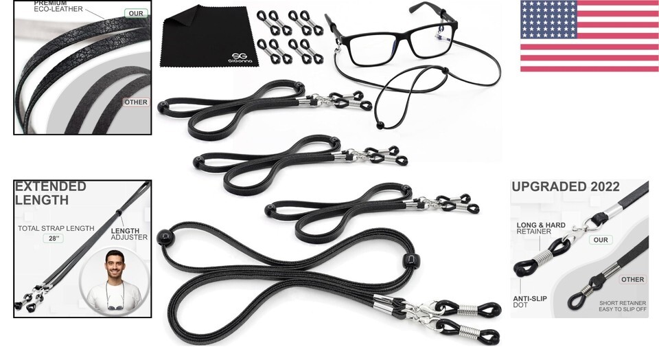 Premium Faux Leather Eyeglass Strap Holder - Universal Fit for All Styles