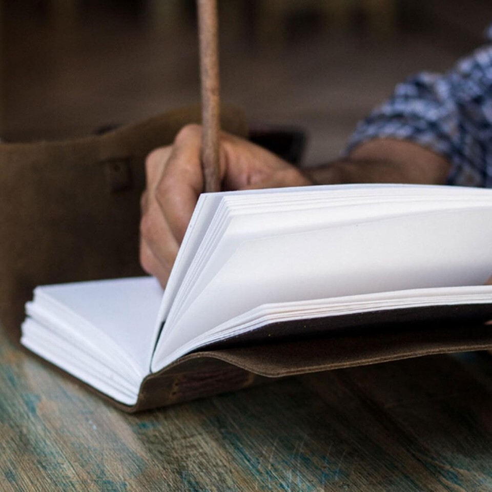 Doubles as a sketchbook, photo album, travel notes, business logbook, hunting journal, poetry book, commonplace book, scrapbook, and Bible journal.