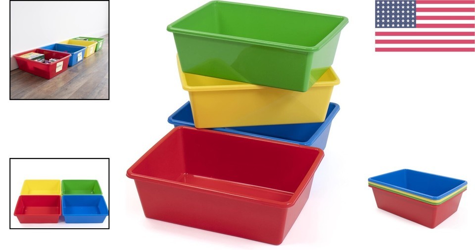 - Premium Large Toy Storage Bins for Kids - 4 Pack, 12x16x6 Inches, Primary Colors