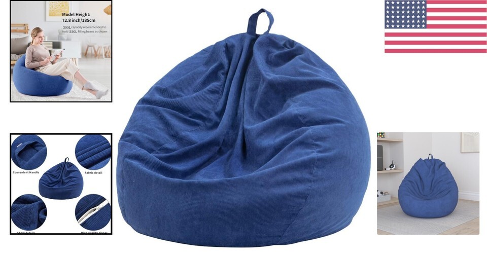 - Premium Soft Corduroy 3ft Bean Bag Chair Cover - Ideal for Storage & Relaxation