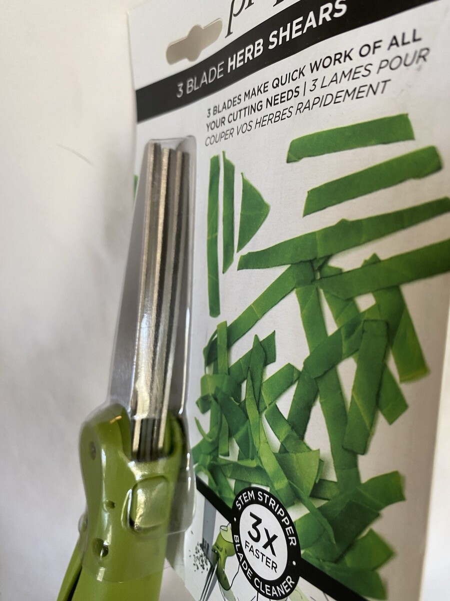 Prepara 3 Blade Herb Shears New in Package Stainless Steel Green Plastic Handles Multi Blade Comfort Handles Accommodates left and right handed users. Integrated Stem Stripper NEW See all photos. Non-smoking home. Be sure to check out my other items! I am happy to combine shipping charges. Please note: My goal is always 100% complete customer satisfaction. If for any reason you feel your item arrives "not as described," please contact me before leaving feedback. I am a trading assistant. I can sell items for you! |KES-PLA|