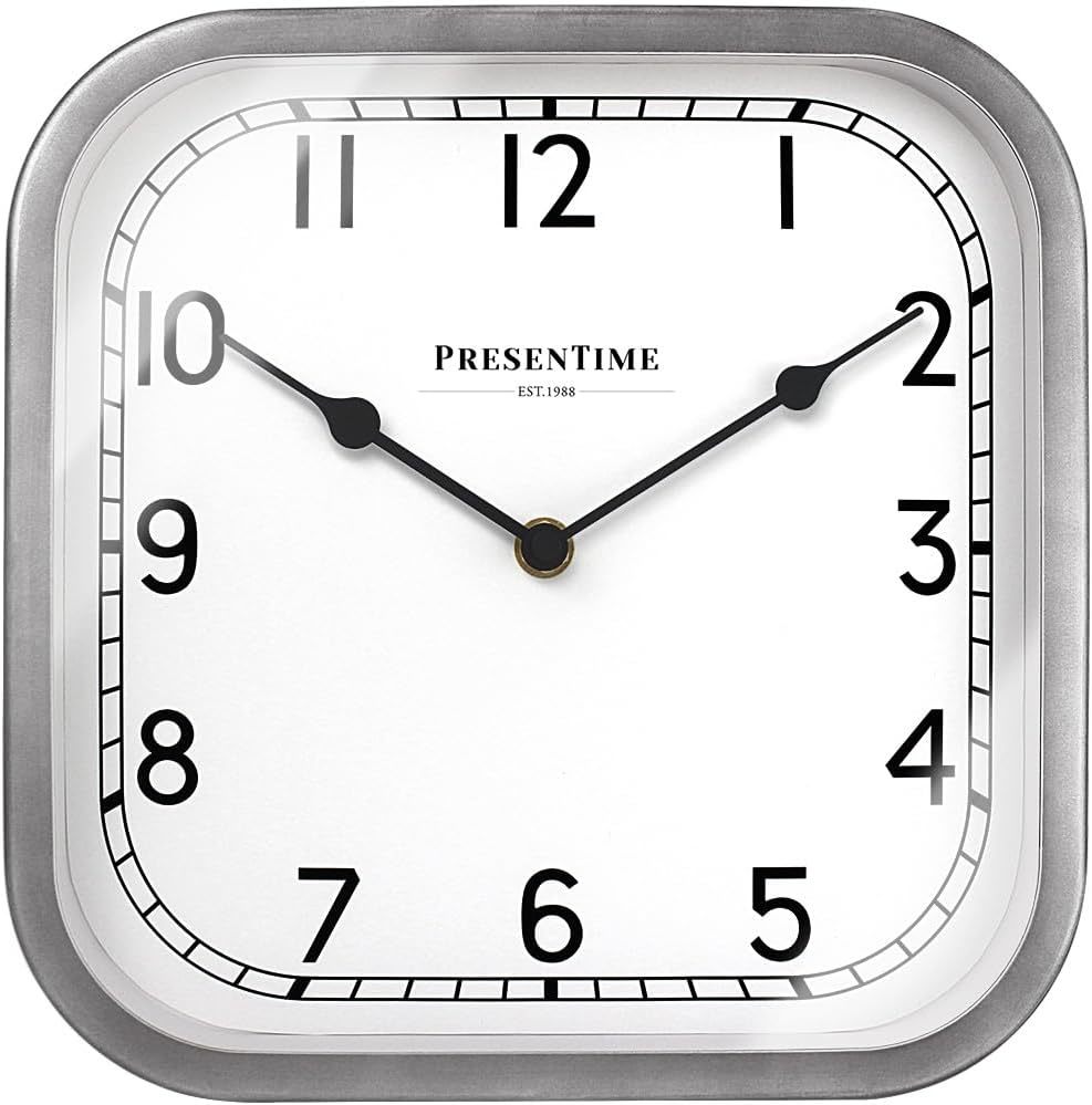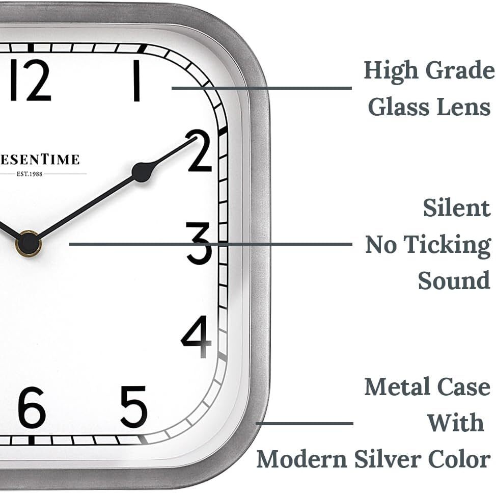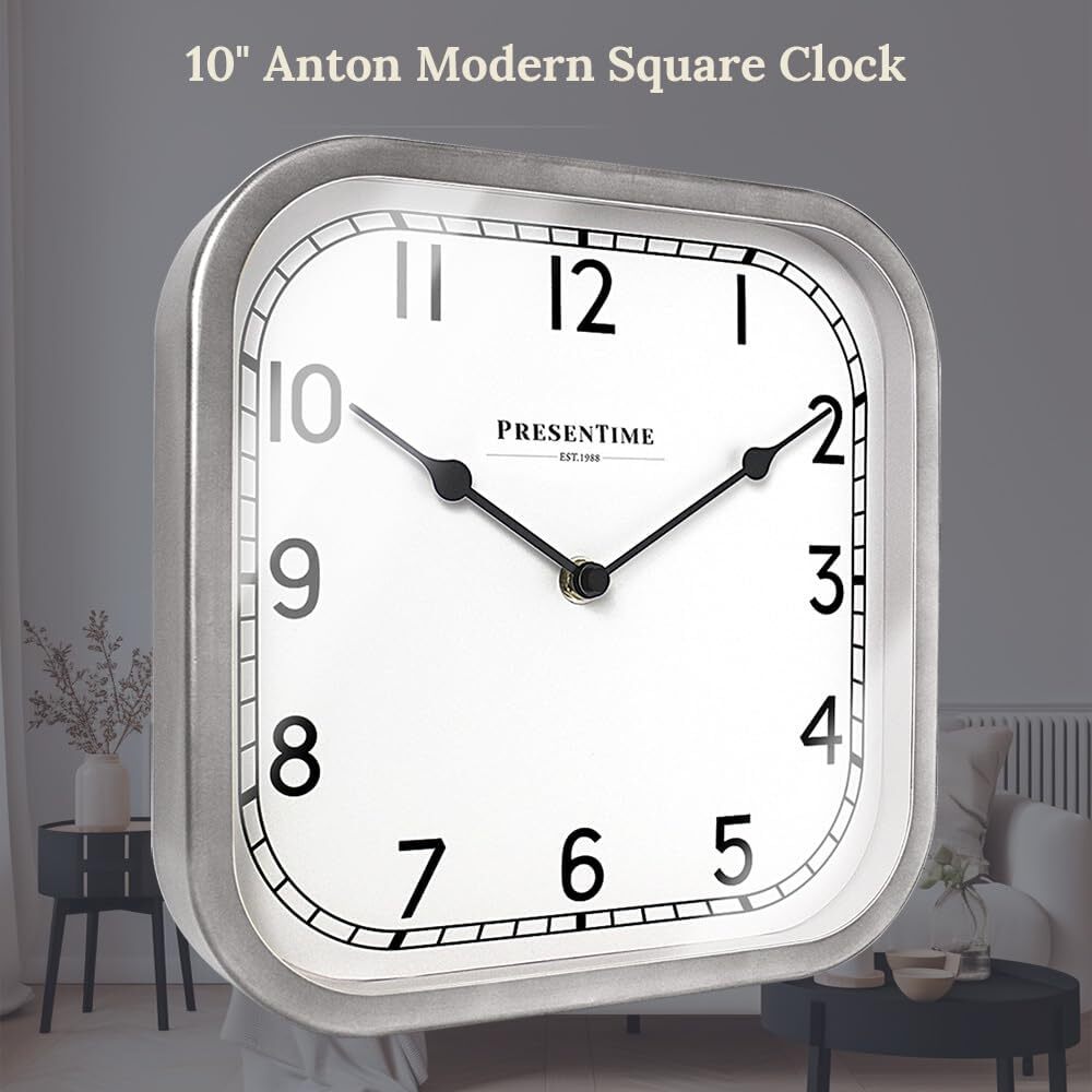 Title : Presentime Co 10" Anton Vintage Square Clock, Silent No Ticking, Wall Mantel 2 in 1, Desk and Shelf Clock, Tabletop Decor, Modern Silver Color