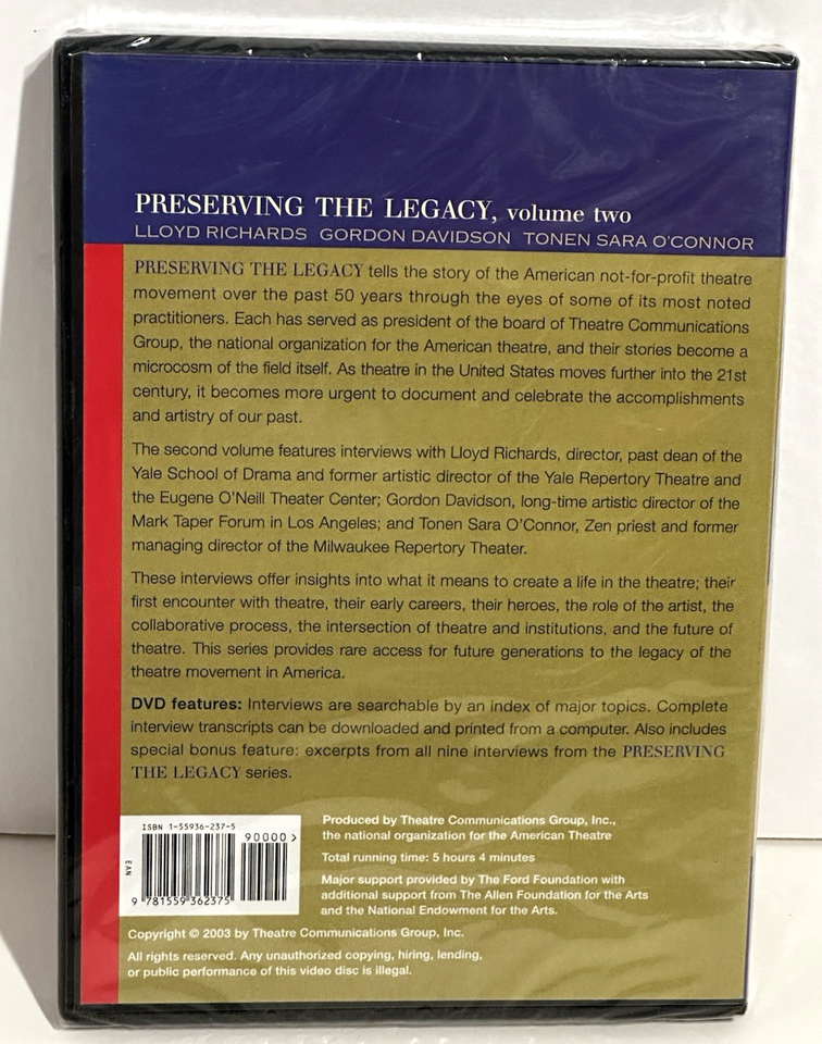 Preserving the Legacy Vol. TWO DVD: Lloyd Richards,Gordon Davidson,Tonen Sara O'Connor New