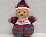 - Prestige Merry Christmas Plump Teddy Bear Rattle 8" Plush Red Green Stripe Soft