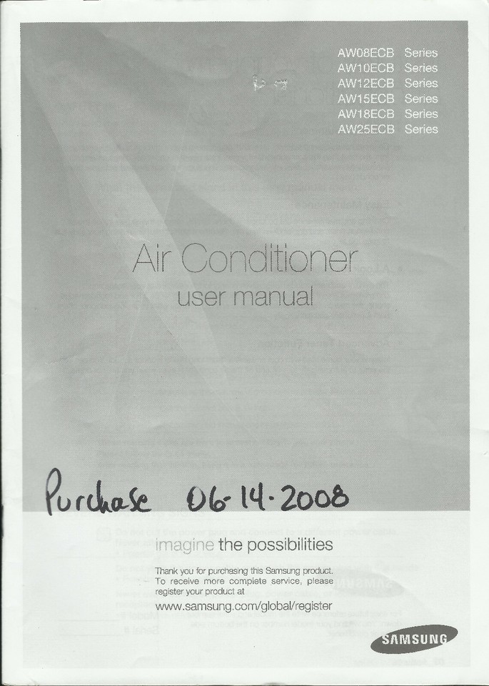 Printed User Manual & Installation for SAUMSUNG Air Conditioner AW Series