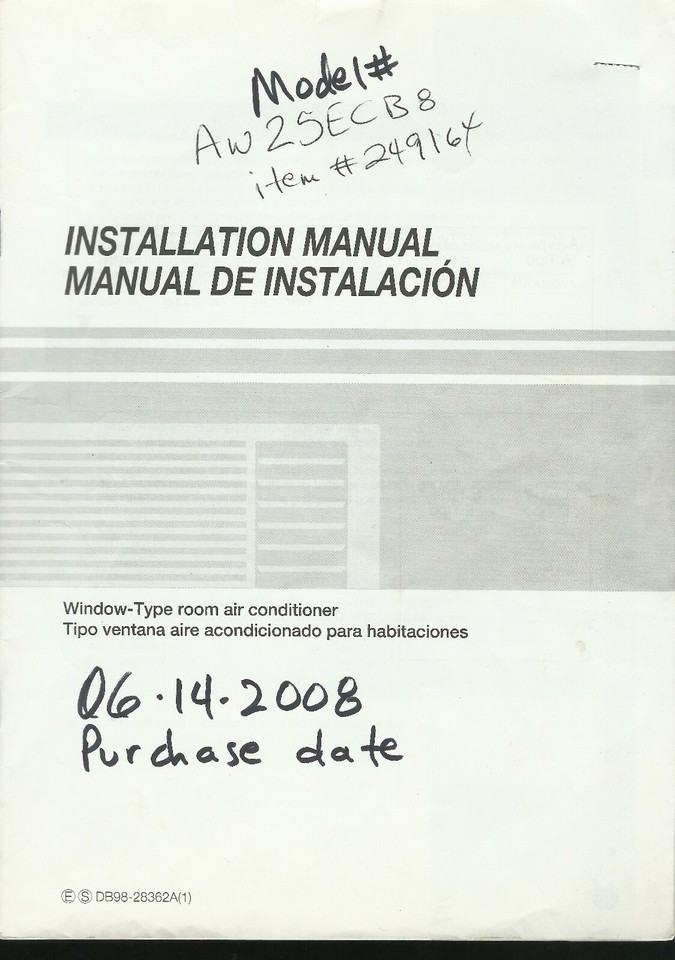 FOR SALE IS ONE (1) GENTLY USED GENUINE SAMSUNG OEM PRINTED OWNER'S MANUAL AND PRINTED INSTALLATION MANUAL FOR SAMSUNG AIR CONDITIONER MODEL(s) AW08ECB, AW10ECB, AW12ECB, AW15ECB, AW18ECB, AND AW25ECB. THIS SALE IS FOR THE 21 page PRINTED OWNERS MANUAL (akA operating instructions) AND 28 PAGE INSTALLATION MANUAL AND WARRANTY CARD, IN ENGLISH AND SPANISH. THIS SAMSUNG ORIGINAL PRINTED OWNERS MANUAL AND INSTALLATION MANUAL IS FOR THE AIR CONDITIONER MODEL(s) AW08ECB, AW10ECB, AW12ECB, AW15ECB, AW18ECB AND AW25ECB MODELS. THESE TWO (2) PRINTED BOOKS WILL PROVIDE ALL FACTORY INFORMATION FOR THIS DEVICE, LIKE INSTALLATION, PREPARATION, BASIC OPERATION, ADVANCED OPERATION, REMOTE CONTROL AND USEFUL INFORMATION. THESE TWO BOOKS, PRINTED OWNERS MANUAL AND PRINTED INSTALLATION MANUAL WERE INCLUDED WITH THE SAMSUNG PRODUCT WHEN SHIPPED FROM THE MANUFACTURER. YOU WILL RECEIVE THE EXACT PRINTED OWNERS MANUAL AND INSTALLATION MANUAL FEATURED IN THE PICTURES SHIPPED BY USPS MEDIA MAIL.....