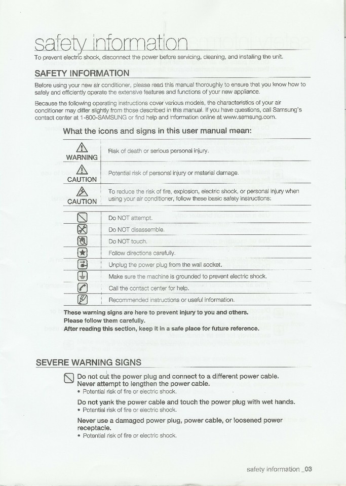 - Printed User Manual & Installation for SAUMSUNG Air Conditioner AW Series