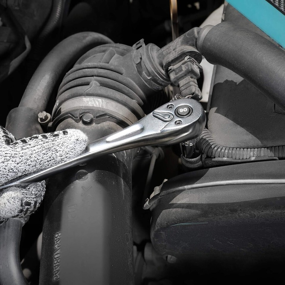 - Professional 3/8 Inch Drive Ratchet Handle - 90-Tooth with Quick-Release