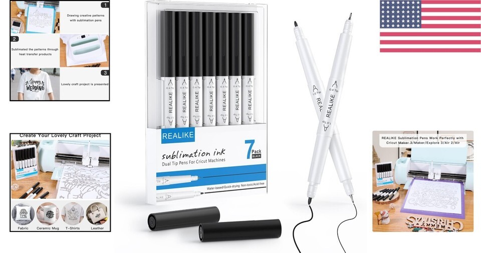 7 Black Sublimation Pens: Tailored for use with Cricut Maker 3, Maker, Explore 3, Air 2, and Air, these pens blend seamless compatibility with remarkable creativity.