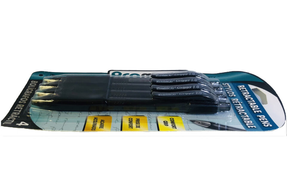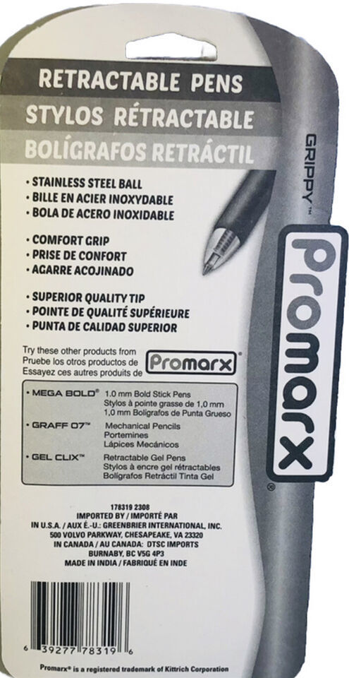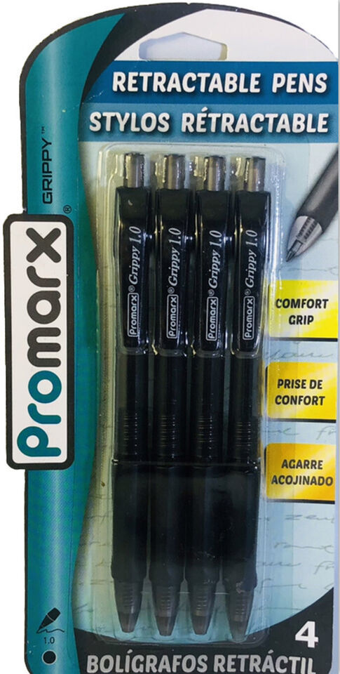 - Promarx® Grippy™ COMFORT GRIP RETRACTABLE BALL POINT BLACK INK 1.0-1Pk Of 4 PENS