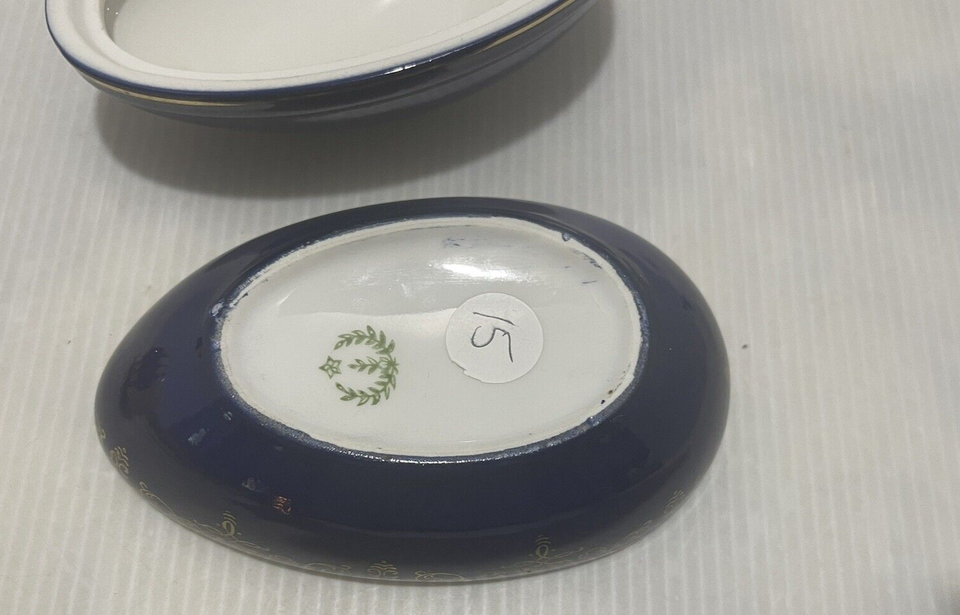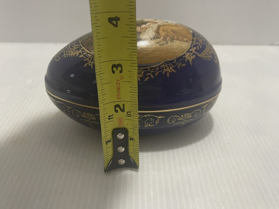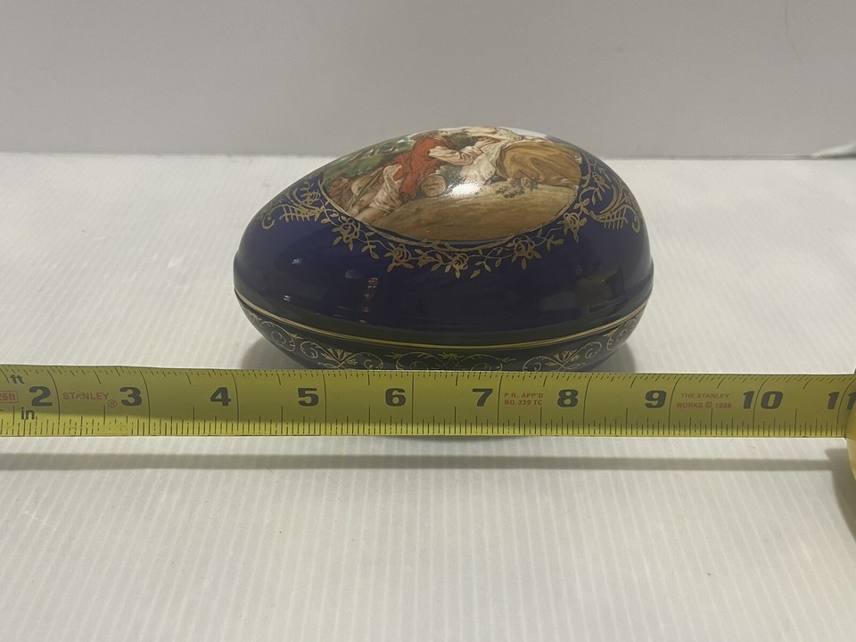 Prussia Francois Boucher Oval Trinket Box Blue Cobalt Couple on Picnic Vintage