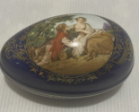 Primary image for Prussia Francois Boucher Oval Trinket Box Blue Cobalt Couple on Picnic Vintage