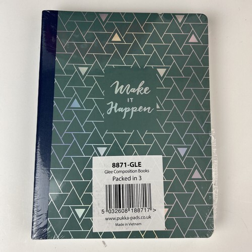 The Pukka Pads Composition books 3 Pack features motivational covers with the themes "Make it Happen" and "Believe," perfect for inspiring students and individuals. The composition books come in a size of 9.75X7.5, with colorful Glee covers and a novelty theme. Ideal for boys and girls, the blank books provide a creative space for writing, drawing, and capturing thoughts and ideas. The Pukka Pad brand ensures quality and reliability in these essential school supplies.