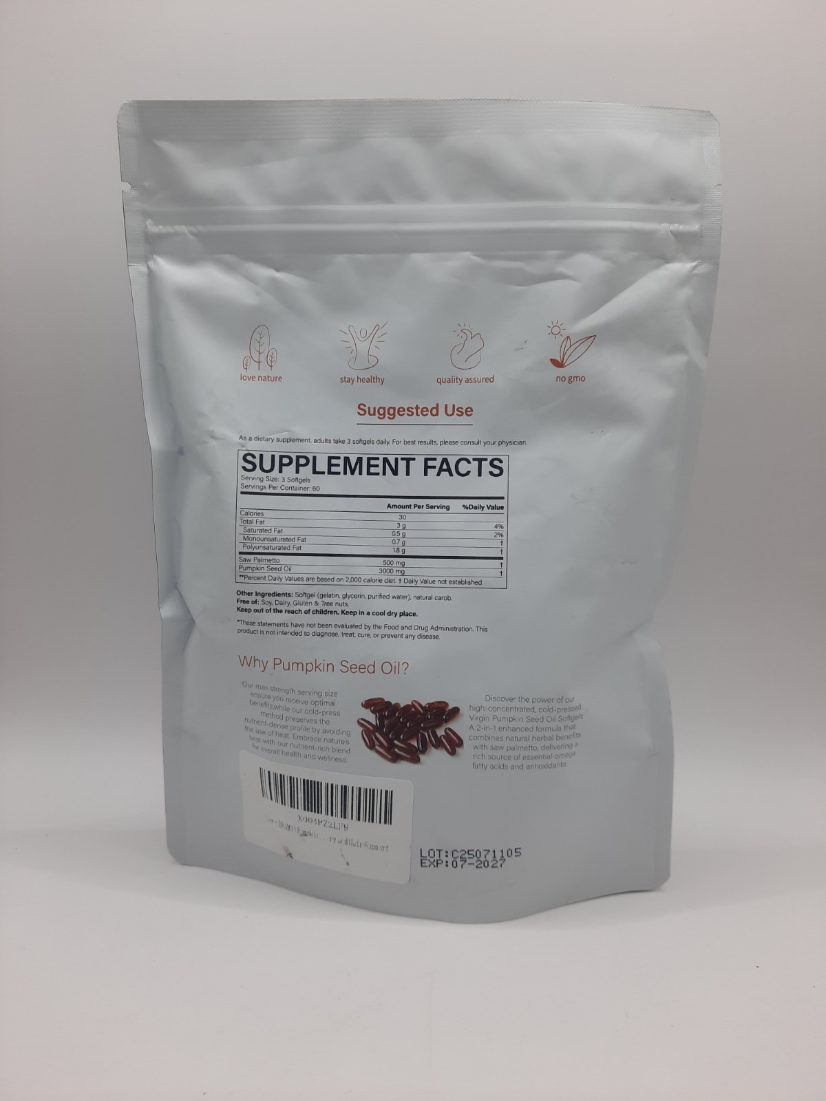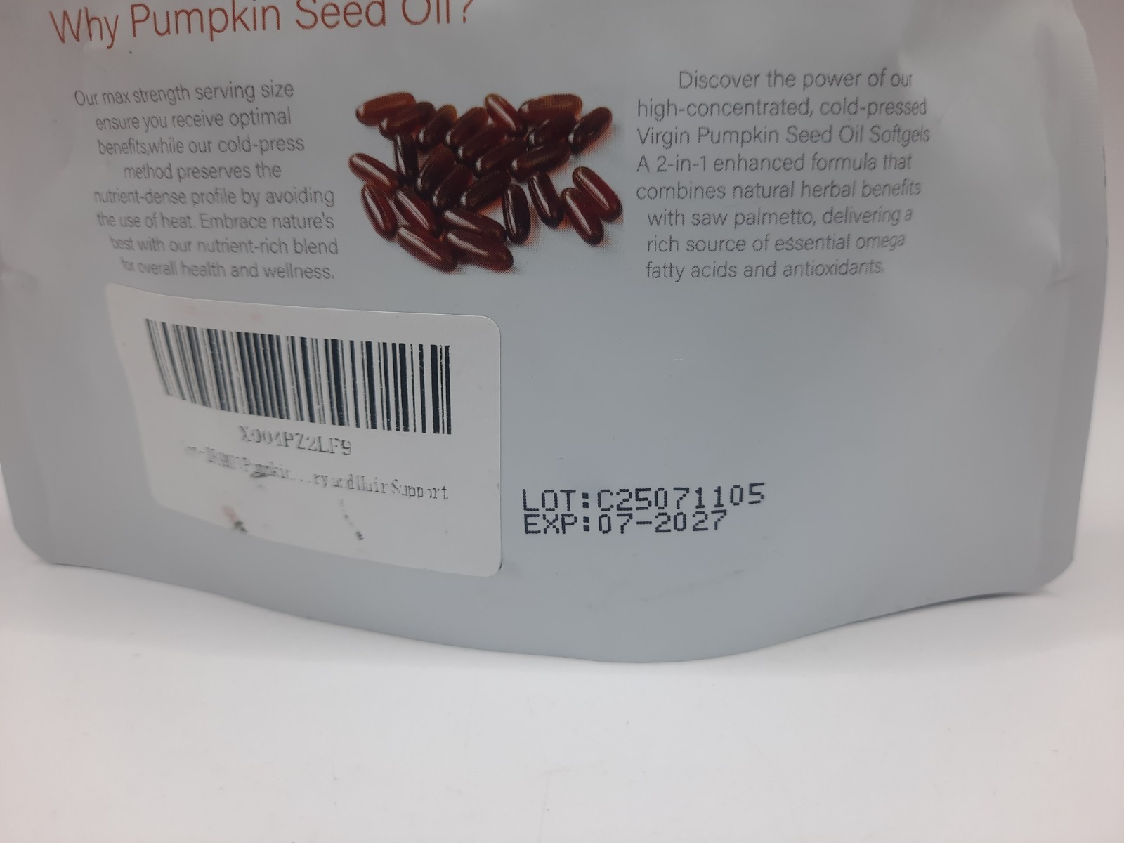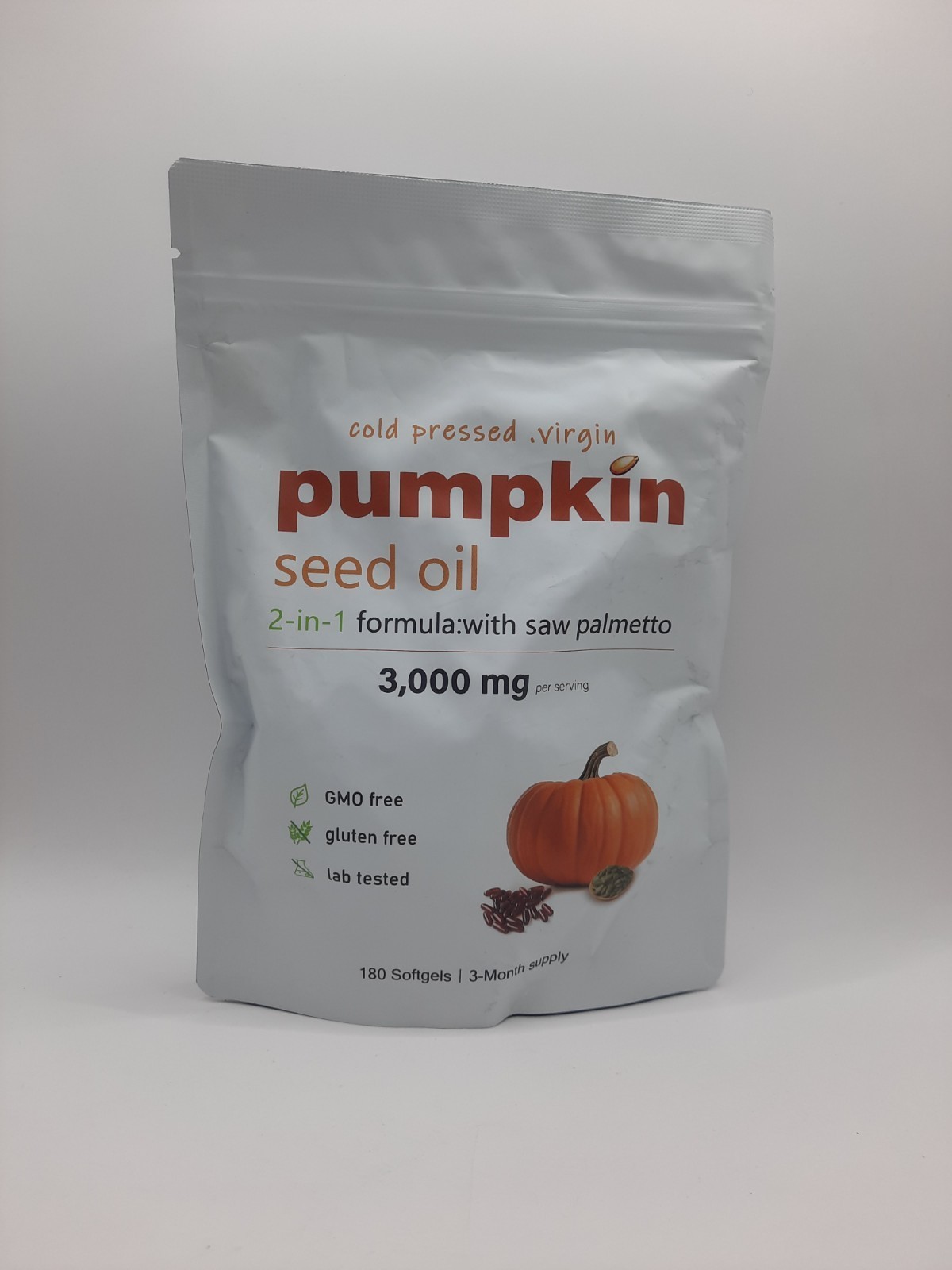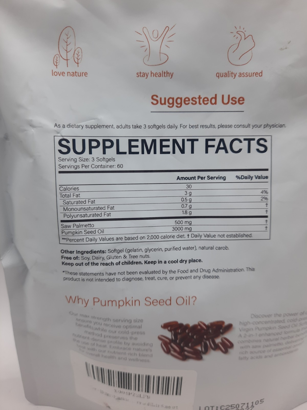 Pumpkin Seed Oil with Saw Palmetto, 3000mg Per Serving, 180 SG Caps Exp 07/2027.