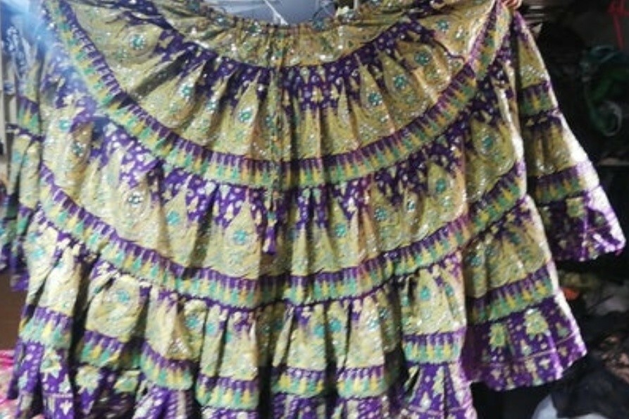 - PURPLE GOLD ✨️ PEACOCK ATS TRIBAL SPARKLE PRINT GYPSY Skirt 25 Yards~36"
