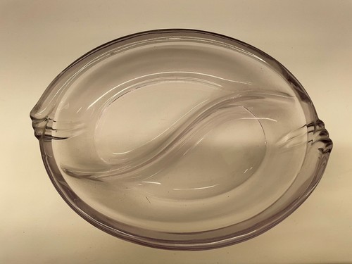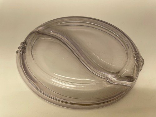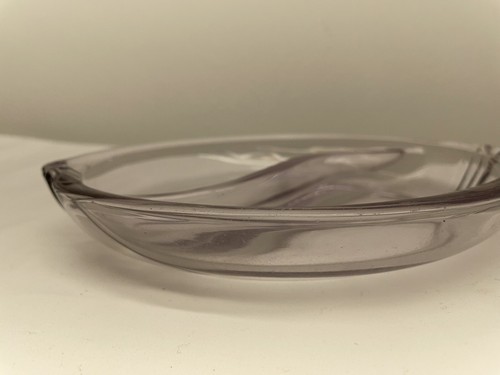 This 7.5 inch purple glass relish dish is a beautiful addition to any collection. Made of high-quality glass, it is perfect for storing and presenting your favorite relishes and condiments. The dish is unmarked and has a unique vintage feel that adds character to any kitchen.